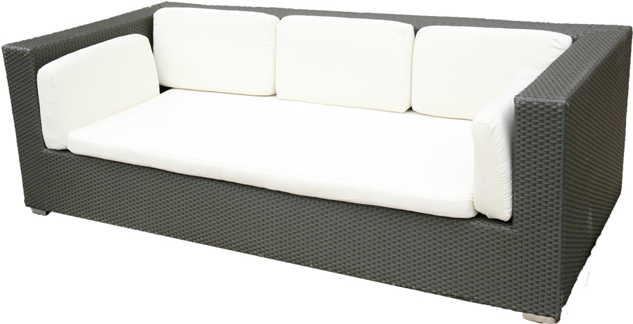 / SOFA, Rattan 3-seater white cushions