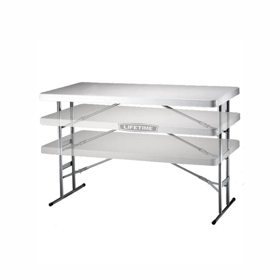Fällbart bord i förstärkt polythenplast. Tål utomhusbruk.