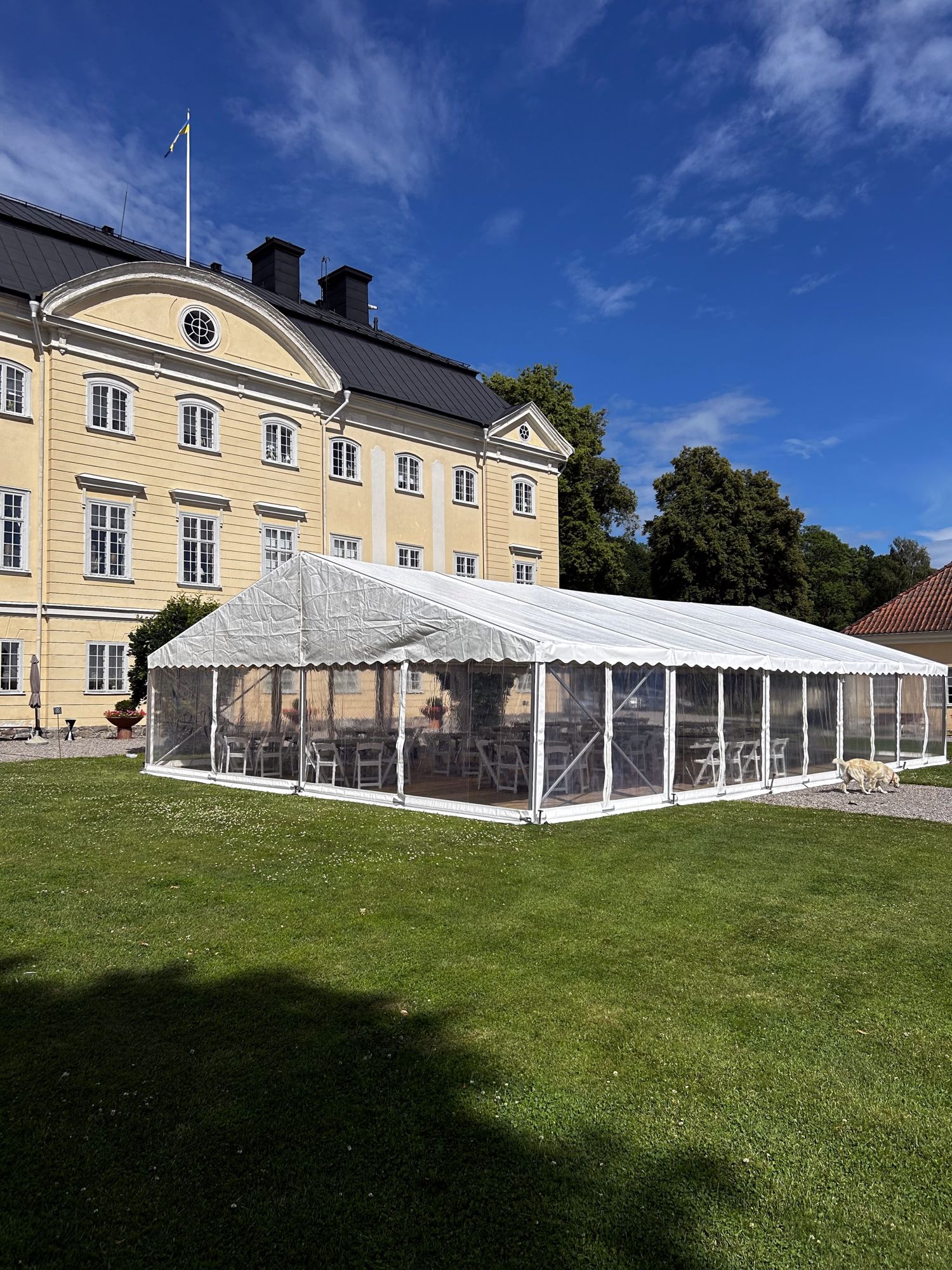 Festhall med 10 m bredd byggs i  3 m moduler så långt som önskas!