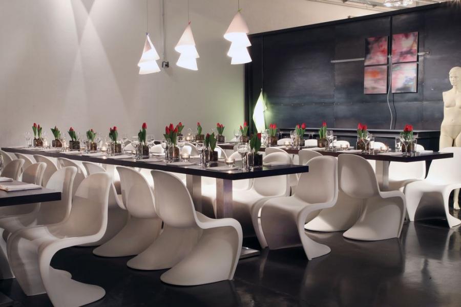 En formgiven Panton stol i helgjuten plast. Moderna och stilfulla stolar i skandinavisk design.